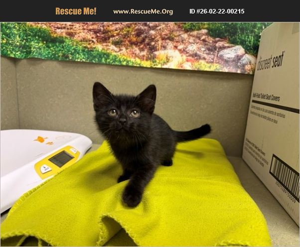 I am described as a male, black Domestic Shorthair. The shelter thinks I am about 14 weeks old. I weigh approximately 2.38 lbs. I have been at the shelter since Feb 17, 2026 and I may be available for adoption on Feb 24, 2026 at 11:12AM.