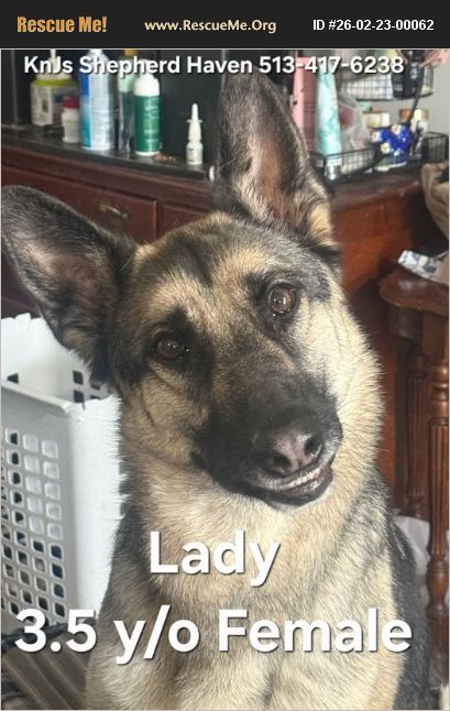 APPLY HERE: TO ADOPT, APPLY HERE: https://docs.google.com/forms/d/e/1FAIpQLSftfJ3aixd0OY8rysxPW0DL1p-swDSrE3k7E8tt_pu7dM2xHQ/viewform?usp=header CONTACT ME: 513-417-6238 or EMAIL: [email protected] ***Trying to keep this amazing breed OUT of shelters, so please HELP me by SHARING this post and/or sending to anyone that may be interested in adopting. IT TAKES A VILLAGE, AND YOU ARE MINE. Those of you that rescue/adopt these Shepherds in need instead of paying a Breeder, YOU are the REAL TRUE HEROES.***Thank you so much. [I do my best to be as accurate as I possibly can in these profiles. I disclose all that is disclosed to me]. [Case opened on 2/23/26]. URGENT!!! MASON, OHIO (willing to drive up to 300 MILED). 3.5 Y/O FEMALE GSD (DOB: 4/25/22). Her name is 'Lady'. Background: Lady was rescued 6 months ago from a severely abusive home. She was improperly shocked with an e-collar and young children were witnessed poking her in the face with sticks and jumping/riding her. She was extremely underweight and emaciated when rescued. Her Current Shepherd Parent has rehabilitated her back to health and stability. UTD on shots WITHOUT record. Fixed. NOT Good with YOUNG kids (VERY SCARED OF THEM. (Good with older respectful children, but MUST be in a home with NO young children due to Trauma History and Fear.) Good with dogs. Good with cats. House trained. Crate trained UNKNOWN (does not currently use crate, kept in laundry room when alone) but will come with one). Any known medical issues?: NO Abuse/Neglect/Trauma History?: Yes. Severe abuse involving e-collar misuse and mistreatment by young children + Previously emaciated. ENERGY LEVEL: Medium. PREY DRIVE LEVEL: Low. Weighs 75 lbs. Currently on Diamond High Energy & Sport Blend dog food. Good with car rides?: Yes. Socialized with: *people?: Limited. Not well socialized with new people. *dogs?: Yes. Good with meeting new people? (ALWAYS USE PROPER INTRODUCTION!): Takes time. She is very skittish and may growl while on guard until she realizes you are not a threat. Slow, structured introductions REQUIRED. Once she realizes that you are not a threat, she is very affectionate Loves: Chin scratches, sitting on your lap, giving hugs (trained command - paws on chest), Eskimo kisses, goat cheese, snacks, cuddling, walks, playing with respectful kids and dogs, chew toys, tug, being brushed, chilling on the couch, sleeping in bed with her person, being near her person at all times. *Intelligent and knows Basic Commands?: Yes. Professionally trained. *Good Recall? (ALWAYS RETRAIN BEFORE ALLOWING OFF LEASH): Yes - excellent recall. *Good on a Leash?: Yes. *Lovable?: Very affectionate once bonded. *Eager and fast learner?: Yes. Bite History?: Minor nip. She nipped a teenage boy who approached and tried to pet her while she was fearful and growling. Fear-based reaction. NOTES FROM CURRENT SHEPHERD PARENT: 'She is a beautiful and loving dog. She may have some irritating quirks (who doesn't?) but at the end of the day, she just wants to love and be loved. You will not find a more loyal and loving companion' She is not gentle when hand fed and needs training in that area - do NOT hand feed until properly worked with. No e-collars. She is very afraid of getting her nails trimmed, but she needs them done ASAP. Re Homing because�'�|: The Current Shepherd Parent's landlord has imposed a strict rule of having no more than two dogs and she already has her two GSDs; she rescued Lady from a horrible situation, and now needs to find Lady her Furever Home. Lady will be a great companion for the right person. Will thrive best�'�|?: In an adult-only home or home with older, respectful children. With someone patient, experienced, calm, and committed to continuing confidence building. She bonds deeply and wants to be near her person. Someone who will not use an e-collar. Comes with: Collar, leash, crate, blanky, food. RehomingFee 175. *If not on Facebook, please text me for more pics and full Profile* Serious Inquiries, please APPLY HERE: https://docs.google.com/forms/d/e/1FAIpQLSftfJ3aixd0OY8rysxPW0DL1p-swDSrE3k7E8tt_pu7dM2xHQ/viewform?usp=header Thank you. Text/Call: 513-417-6238. Please JOIN OUR GROUP: Go to the ALBUM 'Current Shepherds Needing Rehomed' and it will show all of the Shepherds that we are trying to find great homes for. Please message me if you are interested in any of them. Thank you https://www.facebook.com/groups/593859788742255/?ref=share