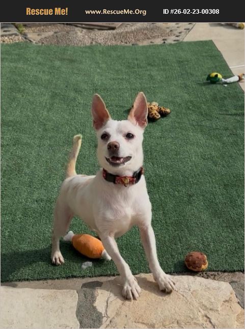 Danny is a 13-pound bundle of love with the perfect mix of spunky and sweet! We believe he's a Chihuahua and Jack Russell Terrier mix, which would explain his playful energy and his big-hearted devotion to his people. This little guy loves to zoom around chasing toys and having a quick burst of fun. After about 10 minutes of playtime, he'll happily signal he's ready to recharge-by plopping right into his foster's lap to request ear scratches and belly rubs. It's his signature move, and it's absolutely adorable. Danny is very social and enjoys making new friends wherever he goes. He's generous with his doggy pals and gladly shares his toys-no resource guarding at all. He gets along wonderfully with other dogs of all sizes, and his foster believes he would do great with respectful children, too. When it's time to wind down, Danny settles into his crate with a few toys and sleeps soundly through the night. He has lovely manners to match his sweet personality. Danny does have a minor cherry eye that doesn't seem to bother him in the slightest. It's purely cosmetic, and an adopter could choose to have it corrected if they wish. If you're looking for a playful companion who will happily entertain you and then curl up in your lap for cuddles, Danny might just be your perfect match.