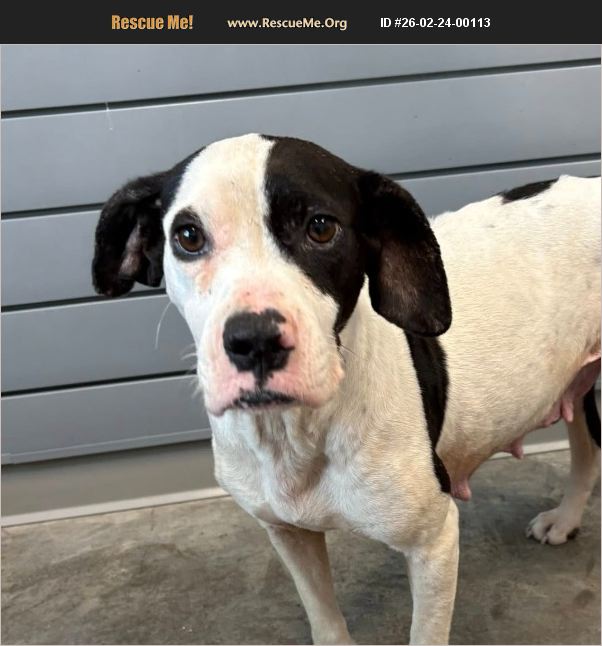 Milk Bone A009709 2 yo Female (spayed) HW+ (completing a 30 day round of doxy) White and black Bulldog/beagle Intake date: 1.13.26