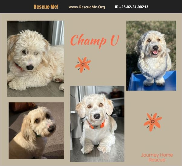 Champ U - Three year old Golden doodle mini. 34 pounds. Champ U is a snuggler, a real lover boy. Needs a home where he will not be left alone a lot. Good with kids, has not been around a lot of dogs, unknown on cats. Loves snuggles, balls, nylabones, Well mannered. House trained. Good on a leash. Fenced yard preferred. Loud noise, such as fireworks. Neutered, vaccines micro chipped. Will be available in February. Located in northern, Utah transport is provided to approved adopter within the Pacific northwest. Email [email protected] for Champ U.
