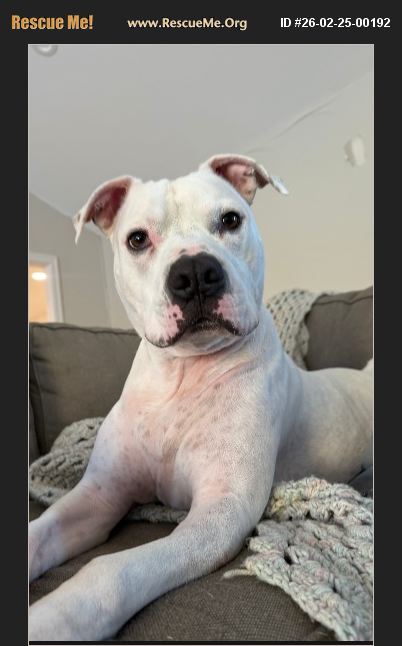 Goose is approx 5 years old and78lbs. He was at the vet in January for all vaccines updates and was told he is getting to many treats, he needs to lose a few lbs. I recused him on 10/15/20222 from the ASPCA. He loves to sleep under the covers and go for walks. He does not like cats but gets along with most dogs. When weather permits I take him to the dog park. On leash he can be protective of me. Only reason I'm looking to re home him is because I'm moving where there are 3 cats. Probably best fit for a home with adults and experience with this breed.