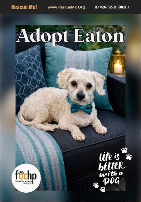 EATON is a 5-year-old Maltese/Poodle mix weighing just 10 pounds of pure sweetness. This adorable little guy is happy, affectionate, and great with other dogs. He has a gentle, loving personality and would make the perfect companion for someone looking for a small, loyal best friend. If you're ready to add this sweet boy to your family, visit fochp.org for more information. ��ժ