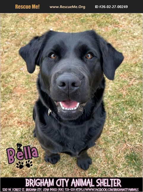 Hi! I'm Bella, a 3-year-old black Lab girl with a big heart and an even bigger zest for life. I came to the shelter with my buddy Ranger. We've been through a lot of change together, but the shelter staff think we could do well either together or separately, as long as we each find loving homes. Of course, sharing a home with my pal would be pretty amazing too. I'm a happy, friendly girl who LOVES people and attention. I'm still brushing up on my manners (I get excited and sometimes forget how big I am when I jump up to say hello), but I'm eager to learn and very treat-motivated, which makes training fun for both of us! About me: Around 3 years old Female (not yet spayed) Very friendly & affectionate Learning polite manners Loves treats and playtime Passed cat test and may do fine with a feline friend Adoption fee: $190 (includes spay) The shelter is still getting to know me, but one thing is already clear, I'm a lovable, fun girl who just needs structure, patience, and a family ready to help me be my best self. If you're looking for a joyful companion who will greet you like you're the best part of her day (because you will be!) I might be your perfect match. Bella & Ranger came in together and would love a home together but finding loving homes matters most. All adoptions are upon approval of the adoption application only Shelter Hours: Monday - Thursday 12-6 pm Brigham City Animal Shelter 1220 W Forest St, Brigham City, UT 84302 (435) 723-1231 Facebook Page: https://www.facebook.com/brighamcityanimals Online Application: https://forms.gle/RquyC9aWssWYamX46 **This post was created by a shelter volunteer. For more photos and videos, please visit the shelter volunteer Instagram: https://www.instagram.com/tiffandhershelterfriends