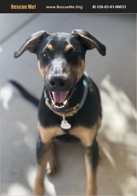 Meet Merlin! Merlin is a 6-month-old Doberman mix with a big heart and an even bigger sense of adventure. At around 40 lbs and growing, this sweet boy is the perfect blend of playful puppy energy and cuddle-ready affection. Merlin is incredibly bright and eager to learn-he already knows how to sit and come when called! His recall is impressive. He's curious about the world and loves being right by your side, whether you're heading out for a walk, a hike, or a beach day. Water is one of his favorite things, and he's always up for exploring new sights and smells. He's pack-oriented and very friendly with other dogs, wonderful with kids, and absolutely adores people. Merlin is very motivated by affection and thrives on love and attention. When the adventure winds down, he's happiest cuddled up close. Merlin is house-trained, crate trained, and does especially well with potty training in a home with a yard. He's ready to settle into a forever home where he can continue learning, playing, and loving. If you're looking for a loyal, adventurous, and incredibly sweet and smart companion, Merlin might just be your perfect match.