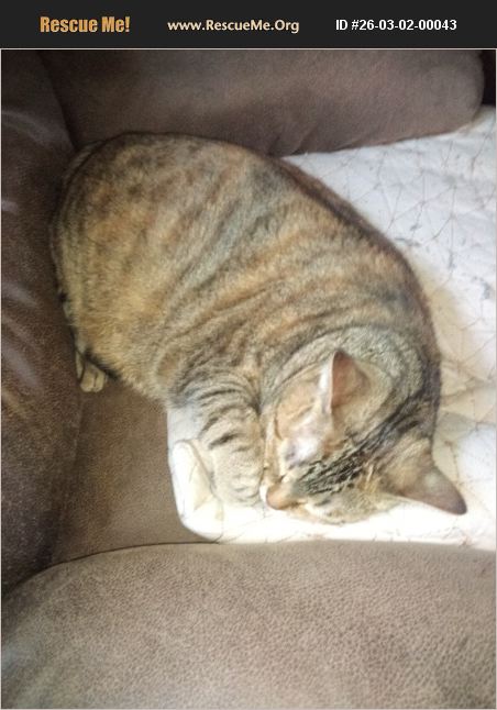 Sophy: 2YO female. Overweight, short Hair, gentle, and housebroken. Bring your own transport cage.