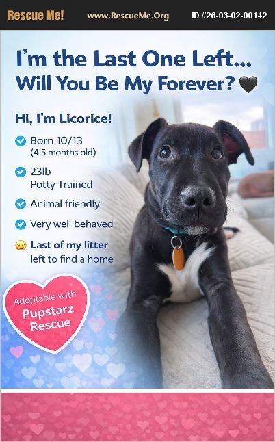 Licorice is an adorable 4-month-old Dachshund/Lab/Terrier mix weighing about 23 lbs (as of 2/13), and he's as sweet as his name. With his soulful eyes and bright, curious mind, this handsome little guy has the perfect blend of playful puppy energy and wise old-soul charm. He loves romping around with toys and his foster dog siblings, but once playtime is over, Licorice is more than happy to curl up for a cozy nap. He makes the perfect work-from-home companion and is friendly with dogs and people of all ages. Bonus: he travels wonderfully in the car and even on the subway! Licorice is fully housebroken and pad trained. He's a total smarty pants who learned 'come,' 'sit,' 'paw,' and 'no' in just a few days-and he's eager to keep learning. He has no known dislikes, doesn't resource guard, and hasn't shown any unwanted behaviors. He has a healthy appetite and absolutely loves his treats-it's impossible not to smile at his wiggly little body when he knows something tasty is coming! If he gets a bit too excited and jumps up, a gentle 'no' redirects him easily-he truly wants to please. While Licorice adores being with his people, he also does well when left alone and hasn't been destructive in the home-quite impressive for such a young pup and a testament to his mature, easygoing nature. Sweet, silly, and incredibly affectionate, Licorice is ready to be someone's very best friend. He's the perfect mix of adventure and cuddles and will happily match the energy of his forever family. If you're looking for a loving, smart, and devoted companion to grow with your family, Licorice just might be your perfect match. ��%BD��%BD��%BD%A4 Mama, Legacy (recently adopted) is a 25-ish pound dacshund x If you would like to adopt this Rockstar, please email [email protected] or visit www.pupstarzrescue.org for an application! https://www.petfinder.com/dog/licorice-bd2b3e54-43f7-4981-9dea-9ada8d216598/ny/forest-hills/pup-starz-rescue-ny1270/details/