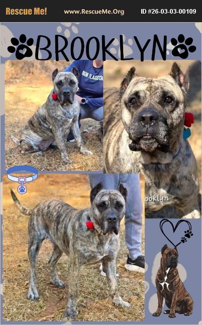 Brooklyn is a 4-year-old, spayed female Perro de Presa Canario with a beautiful brindle coat and an even more beautiful heart. She came to us as a stray after previously being adopted from another shelter, where she successfully completed heartworm treatment. Despite our efforts, no owner came forward for her. Their loss is truly someone else's incredible gain. Brooklyn is the definition of a classy little lady. She is exceptionally gentle and well-mannered with humans of all ages. Her sweet, submissive nature makes her a joy to be around, and she carries herself with a calm confidence that is simply perfection. She has wonderful manners and solid training. Brooklyn knows: Sit Stay Come Down Focus Gentle She walks beautifully on a leash and does not pull at all-making daily walks relaxing and enjoyable. When playing with toys, she is soft and respectful, always aware of where your hands are. She will happily drop a toy when asked and loves a good game of tug-o-war. Brooklyn is not food or toy possessive in the slightest. You can be near her bowl while she's eating, and she remains completely relaxed. She's easygoing, trusting, and secure. She is great with other animals and very passive by nature. If another dog is barking at her, she simply chooses not to engage and would rather avoid the interaction. She prefers peace over conflict every time. Brooklyn is truly one of the most amazing girls you could ever meet. She is incredibly sweet, deeply loving, and ready to give her whole heart to a forever family. If you're looking for a gentle, devoted, well-mannered companion, Brooklyn is your girl.