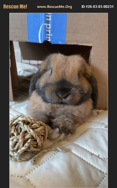 Mochi is a three year old intact holland lop rabbit. He is so sweet and loving, and he always wants to be pet. He does not like getting picked up. He needs lots of room to run around and lots of attention and chew toys. He has been an absolute wonderful pet to me but he no longer gets along with my cats so I cannot provide him as much space as I used to. I have also developed several allergies to his hay which makes it harder to be around him as much as I would like to. Adoption will include large x pen.