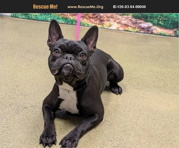 ID#A549362 I am described as a female, black and white French Bulldog mix. The shelter thinks I am about 3 years old. I weigh approximately 27.40 lbs. I have been at the shelter since Mar 03, 2026 and I may be available for adoption on Mar 12, 2026 at 10:09AM.