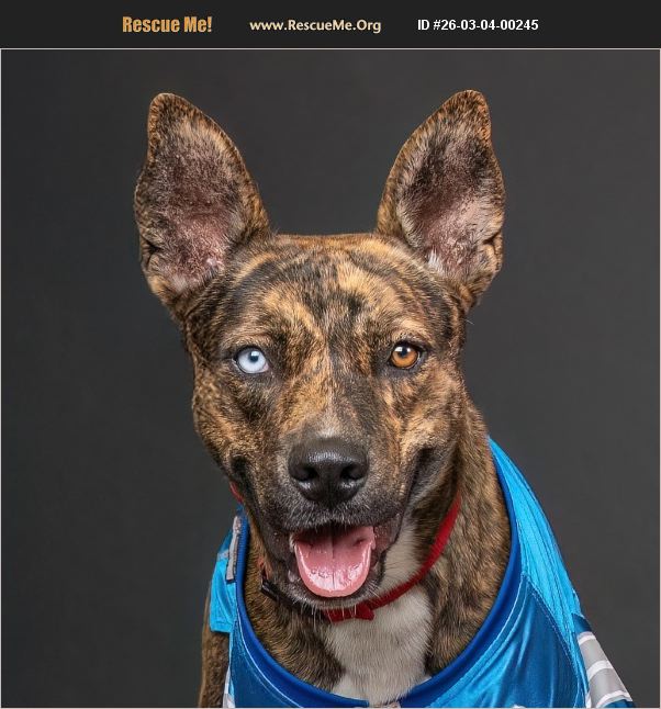 Attributes:Affectionate with familiar People, Good in Car,Good with some Dogs,Shy meeting new People,Good meeting new People, Meet Zack - 4 years old, one blue eye, one brown eye, and 100% heart. This handsome pit bull mix is a happy, affectionate guy who bonds deeply with his people and loves soaking up attention. He's good on leash, rides well in the car, and is happiest when he's simply by your side (toys? take 'em or leave 'em). Zack can be a little shy when meeting new people, but once he knows you, he's all in. He seems okay with kids, has done well with some dogs, and would benefit from a little basic training to help him keep building confidence. He may have a touch of 'escape artist' curiosity, so a secure yard and mindful home will set him up for success. If you're looking for a loyal companion with striking eyes and an even sweeter soul, Zack might just be your guy.