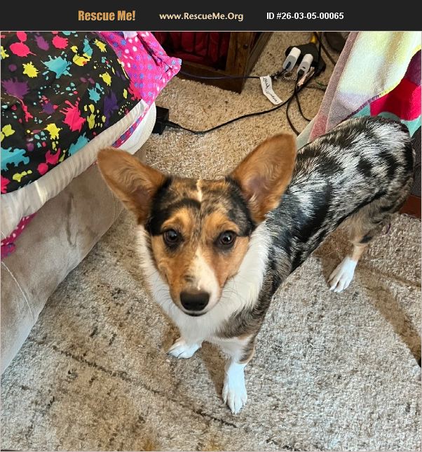 Beautiful 'Cowboy ' Corgi with more energy than this disabled lady can accommodate. Health changes have affected my ability to properly care for this beautiful little girl. The adoption fees are my investment but are negotiable.