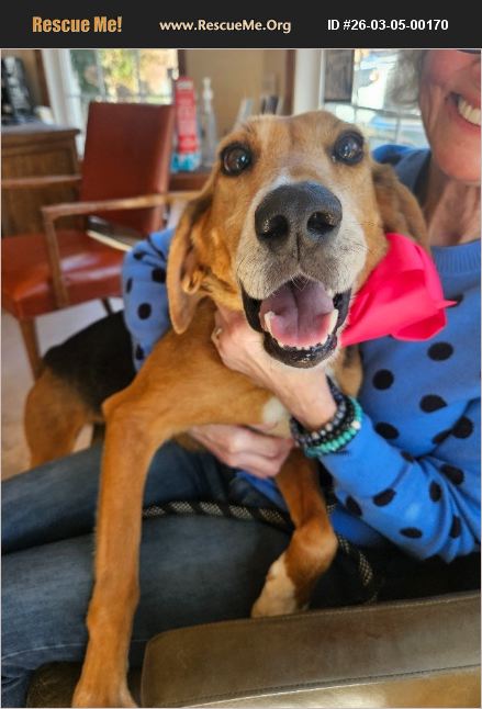 I'm Abby and if you like hounds you're gonna love me. I'm a sweet, friendly girl who loves to explore every nook and cranny. I am learning some basic commands and I like it because it involves treats and I am food driven. My days are filled with playful antics and goofy moments that will surely make you laugh. I'm also quite the cuddler - perfect for cozy evenings. My crossed eyes only add to my beauty and they see the best in everyone. If you're looking for a loving companion to add energy and laughter to your life, I'm your girl! Let's make endless memories together. Why not come by and meet me? I'm ready to love and be loved!