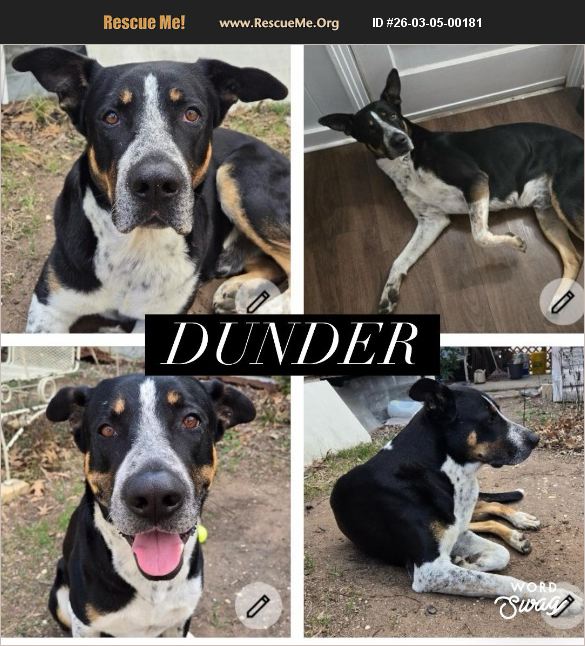 Help me find a great home for Dunder , fully vetted!! He is about 65 lbs, around 3 years old (best guess), shorthair, possible Catahoula/Rottweiler mix, healthy teeth and coat personality: - sweet, gentle demeanor mixed with some puppy energy - cuddly and loves being petted, but not pushy - quiet (minimal barking) - housetrained; not very active inside the house - intelligent; picks up on things very quickly but seems mostly untrained with specific commands - seems good with other dogs - requires space to roam & sniff around, but not hyperactive - well-behaved on leash but seems unfamiliar with it and needs training - no notable negative behaviors (does not exhibit any destructiveness, begging for food, resource guarding, nipping, growling, separation anxiety, etc) - rabies and dhlpp vaxed Text Sunni your email address for an adoption app 830 237 8588 canyon lake tx