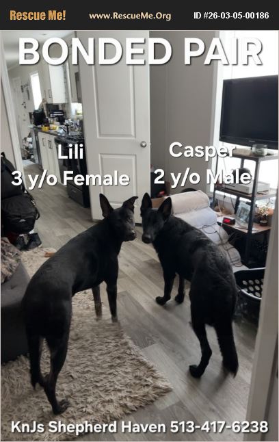 APPLY HERE: TO ADOPT, APPLY HERE: https://docs.google.com/forms/d/e/1FAIpQLSftfJ3aixd0OY8rysxPW0DL1p-swDSrE3k7E8tt_pu7dM2xHQ/viewform?usp=header�%81%A0 CONTACT ME: 513-417-6238 or EMAIL: [email protected] ***Trying to keep this amazing breed OUT of shelters, so please HELP me by SHARING this post and/or sending to anyone that may be interested in adopting. IT TAKES A VILLAGE, AND YOU ARE MINE Those of you that rescue/adopt these Shepherds in need instead of paying a Breeder, YOU are the REAL TRUE HEROES.***Thank you so much��%A4%8D. [I do my best to be as accurate as I possibly can in these profiles. I disclose all that is disclosed to me]. [Case opened on 3/5/26]. URGENT!!! AT RISK FOR SURRENDER/EUTHANIZATION! DEADLINE 5/25/26! PLEASE HELP! BONDED PAIR - MUST STAY TOGETHER!!! Flint, Michigan (willing to drive up to 400 miles). HER: 3 Y/O FEMALE Shepherd/Husky/Lab Mix (DOB: 10/30/22). Her name is 'Lili'. Background: Lili has been with her current Shepherd parent since she was a puppy. She has grown up in a home environment and is deeply bonded with her brother Casper. UTD on shots WITH record. Fixed. NOT Good with kids. Good with dogs. Good with cats. House trained. NOT Crate trained (free roams the home when alone). Any known medical issues?: Anxiety (currently on medication). Abuse/Neglect/Trauma History?: None known. ENERGY LEVEL: Low. PREY DRIVE LEVEL: Medium. Weighs 105 lbs. Currently on TSC High Protein dog food. Good with car rides?: Yes. Socialized with: *people?: Yes. *dogs?: Yes. Good with meeting new people? (ALWAYS USE PROPER INTRODUCTION!): No. She struggles with meeting new people and needs slow, proper introductions. Loves: Sleeping in bed with her person, treats, outside time, car rides, walks, balls, soft toys, getting lots of lovins, standing between your legs, parks and beaches, nature walks, cuddling and chilling on the couch, playing with dogs, playing fetch, being near her person, yak chews, and yogurt. *Intelligent and knows Basic Commands?: Yes. *Good Recall? (ALWAYS RETRAIN BEFORE ALLOWING OFF LEASH): Yes. *Good on a Leash?: Yes. *Lovable?: Yes, very affectionate with her people. *Eager and fast learner?: Yes. Bite History?: No. NOTES FROM CURRENT SHEPHERD PARENT: 'She is a very timid but loving dog she's on medication for anxiety but once she knows you she absolutely loves you she leans towards men more but she loves her mom she's a lazy girl but also has her crazy moments where she likes to play'. HIM: 2 Y/O MALE German Shepherd (DOB: 6/28/24). His name is 'Casper'. Background: Casper has also been with the current Shepherd parent since he was a puppy and is deeply bonded to Lili. They rely on each other for comfort and companionship. UTD on shots WITH record. NOT Fixed. Unknown with kids. Good with dogs. NOT Good with cats. House trained. NOT Crate trained (free roams the home). Any known medical issues?: None known. Abuse/Neglect/Trauma History?: Yes. Casper was dumped on the side of the road as a puppy before being rescued. ENERGY LEVEL: High. PREY DRIVE LEVEL: High. Weighs 78 lbs. Currently on TSC High Protein dog food. Good with car rides?: Yes. Socialized with: *people?: Yes. *dogs?: Yes. Good with meeting new people? (ALWAYS USE PROPER INTRODUCTION!): Yes. Loves: Balls, balls, and more balls, cuddling, going on walks, chilling on the couch, playing with dogs, playing fetch, sleeping in bed with his person, and being near his person. *Intelligent and knows Basic Commands?: Yes. *Good Recall? (ALWAYS RETRAIN BEFORE ALLOWING OFF LEASH): Yes. *Good on a Leash?: Yes. *Lovable?: Very affectionate. *Eager and fast learner?: Yes. Bite History?: No. NOTES FROM CURRENT SHEPHERD PARENT: 'He's super energetic and loving it he loves ball more lol he just wants to play fetch all day'. Re Homing because�'�|: The Current Shepherd Parent is going through personal life changes and can no longer keep them. This adorable Bonded Pair will be great companions for the right person. Will thrive best�'�|?: in a loving home that will keep them together with NO kids and NO cats. Comes with: Collar, leash, beds, food, toys, and medications (Lily's anxiety medication). RehomingFee $200 total for BOTH, NOT EACH. (bonded pair - must stay together). If not on Facebook, please text me for more pics and full Profile. Serious Inquiries, please APPLY HERE: https://docs.google.com/forms/d/e/1FAIpQLSftfJ3aixd0OY8rysxPW0DL1p-swDSrE3k7E8tt_pu7dM2xHQ/viewform?usp=header�%81%A0 Thank you. Text/Call: 513-417-6238. Please JOIN OUR GROUP: Go to the ALBUM 'Current Shepherds Needing Rehomed' and it will show all of the Shepherds that we are trying to find great homes for. Please message me if you are interested in any of them. Thank you https://www.facebook.com/groups/593859788742255/?ref=share�%81%A0