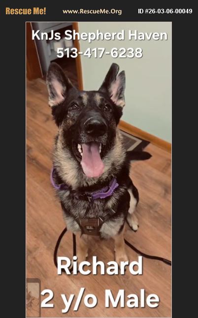 APPLY HERE: TO ADOPT, APPLY HERE: https://docs.google.com/forms/d/e/1FAIpQLSftfJ3aixd0OY8rysxPW0DL1p-swDSrE3k7E8tt_pu7dM2xHQ/viewform?usp=header�%81%A0 CONTACT ME: 513-417-6238 or EMAIL: [email protected] ***Trying to keep this amazing breed OUT of shelters, so please HELP me by SHARING this post and/or sending to anyone that may be interested in adopting. IT TAKES A VILLAGE, AND YOU ARE MINE. Those of you that rescue/adopt these Shepherds in need instead of paying a Breeder, YOU are the REAL TRUE HEROES.***Thank you so much. [I do my best to be as accurate as I possibly can in these profiles. I disclose all that is disclosed to me]. [Case opened on 3/6/26]. URGENT!!! Salem, Ohio. (willing to drive up to close by). (Almost) 2 Y/O MALE GSD (DOB: 04/05/24). His name is 'Richard'. Background: Current Shepherd parent rescued Richard from his Previous Person, (patient) at the hospital where she works after he said he was going to kill him. She stepped in to save his life. UTD on shots WITH record. NOT Fixed. Unknown with kids. Good with dogs. NOT Good with cats. House trained. Crate trained. Any known medical issues?: None known. Has just been to the vet and got a check up and up to date on his vaccines. Abuse/Neglect/Trauma History?: Yes. Previous Person was homeless and neglected Richard. He has visible scars on his face, and z split in his L ear. ENERGY LEVEL: High. PREY DRIVE LEVEL: Medium. Weighs 64 lbs. Currently on 4Health dog food. Good with car rides?: Yes. Socialized with: *people?: Yes. *dogs?: Yes. Good with meeting new people? (ALWAYS USE PROPER INTRODUCTION!): Yes. Loves: Toys, food, other dogs, cuddling, walks, chilling on the couch, playing with other dogs, balls, fetch, sleeping in bed with his person, and being close to his person. Also enjoys bones and chew toys. *Intelligent and knows Basic Commands?: This breed is super intelligent. *Good Recall? (ALWAYS RETRAIN BEFORE ALLOWING OFF LEASH): Yes, recall is good. *Good on a Leash?: Yes. *Lovable?: This breed is super lovable once they claim you as their person/family. *Eager and fast learner?: This breed is super fast learners when they are being committed to and worked with. Bite History?: Yes - accidental. Richard was attempting to mate with a female dog and accidentally bit his previous person during the situation. The previous Shepherd Parent then went to the hospital and filed a report and threatened to kill Richard. This was when the Current Shepherd Parent/Foster stepped in and saved him. NOTES FROM CURRENT SHEPHERD PARENT: 'Richard is a good boy.I took him in 3 weeks now.And he did a 360 he just needs somebody that loves him and just get him.The attention that he needs.' Re Homing because�'�|: The Current Shepherd Parent/Foster rescued Richard to save his life but cannot keep him because he is aggressive to cats and has already attacked her cat. This poor guy has had a hard life and it's time for him to live a happy life full of love and kindness. He is such a happy and sweet guy and deserves the best. Richard will be a great companion for the right person. Will thrive best�'�|?: In a loving home with NO cats. Comes with: Collar, leash, harness, crate, bed, and toys. RehomingFee $175. If not on Facebook, please text me for more pics and full Profile. Serious Inquiries, please APPLY HERE: https://docs.google.com/forms/d/e/1FAIpQLSftfJ3aixd0OY8rysxPW0DL1p-swDSrE3k7E8tt_pu7dM2xHQ/viewform?usp=header�%81%A0 Thank you. Would you like to donate to a great cause? Any help is so much APPRECIATED and NEEDED. (We are NOT 501c) Help US to help THEM��%A4%8D Tysm #ItTakesAVillage LINKS TO DONATE: Amazon WishList: https://www.amazon.com/hz/wishlist/ls/1D1I1QOVAGR4H?ref_=wl_share�%81%A0 Walmart WishList: https://www.walmart.com/lists/shared/WL/6214b31a-4919-4d0a-868e-b75e6bace5e0�%81%A0 Venmo: https://venmo.com/code?user_id=2889571939385344656&created=1767974792�%81%A0 CashApp: https://cash.app/$KnJsShepherdHaven�%81%A0 PayPal: Keren Lainhart [email protected] 513-417-6238 KnJs Shepherd Haven 513-417-6238 [email protected] Text/Call: 513-417-6238. Please JOIN OUR GROUP: Go to the ALBUM 'Current Shepherds Needing Rehomed' and it will show all of the Shepherds that we are trying to find great homes for. Please message me if you are interested in any of them. Thank you https://www.facebook.com/groups/593859788742255/?ref=share�%81%A0