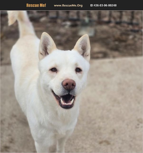 Kenzie is a beautiful, large female adult dog, believed to be a Chow Chow and Husky mix. She has a striking white coat, as seen in the image. Kenzie is looking for her forever home. She is an affectionate and loving companion waiting for someone to express interest in adopting her.