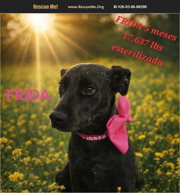 Hi, I'm Frida! I am a young pup survivor from the streets of Tijuana. I can be a bit shy at first, but I will be the sweetest once I open up. I will grow to be a medium sized dog. I would love to find a foster soon to be transported to LA and start my journey in finding my forever home. Yes, I am dog, kid and people friendly. I also love walks, toys and treats! Please contact my rescue to add me to your family! Please contact my rescue here: 562-328-5276 (Text or call) Hope to meet you really soon FRIDA(3