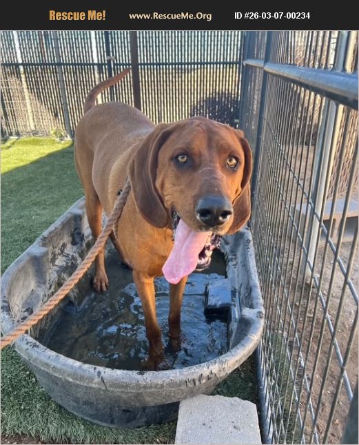 BIG BOY SEASON ISN'T OVER�'�| MEET COPPER! Some more of sweet Copper (A287492) because a handsome boy like this deserves the spotlight! Copper is a 5-year-old neutered Redbone Coonhound weighing in at a big, lovable 109 pounds of pure goofy goodness. Copper is everything you'd expect from a hound. He loves using that incredible nose of his and will happily stop to sniff every bush on a walk. He does walk well on a leash, though he may pull a bit when something interesting catches his nose. It's just the hound life! This big guy also LOVES water and will jump at the chance to splash and play. When he's not investigating scents or enjoying the water, he's being his silly, lovable self. Copper is truly just a big goofy boy with a lot of personality. Copper is housetrained and good with kids. He's also currently sharing a kennel with a female dog and appears to be doing well. Cats are unknown. Like many hounds, Copper does enjoy the sound of his own voice - but hey, that's part of the charm! PLEASE RESEARCH BREEDS BEFORE GETTING THEM Hounds are wonderful dogs but they do have unique traits. Animals are lifelong commitments, and sweet dogs like Copper deserve a family who understands and loves them for who they are. If you have a dog at home, we always recommend bringing them in for a meet and greet to make sure everyone gets along. Copper has so much love (and goofiness) to give. Let's help this big boy find the home he deserves. 1150 S. Eleven Mile Corner Rd Casa Grande, AZ 85194 520-509-3555 [email protected] Come meet Copper - he might just be your new best friend.