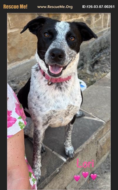 LORI is a sweet as pie, loving little 18 month old Australian cattle dog and German short haired pointer mix. Medium energy girl who would love a home that will play with her, include her in their life and then cuddle up to watch a movie. Dog friendly with both male/female and medium/large breeds. Her favorite games are keep away and chase. She would do great with a doggie buddy or by herself as long as she gets exercise and has a fenced back yard. House trained. Crate trained. Very intelligent girl who wants to please. Rides well in the car. No anxiety being left home alone. Lori could fit into most any home. She would learn anything you wanted to teach her including hiking, agility training, or even running short distances. Has not been cat tested, so will not be adopted to a home with cats or small critters. Lori is 35 lbs, spayed, microchipped, fully vaccinated and heartworm negative. Fostered in North Texas with transport available to most states. Please submit your application for loyal Lori here: https://www.furrysidekickrescue.org/