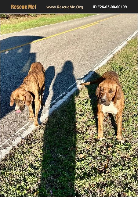 Bonded sister Plott hounds, not sure if full blooded. Found in Quincy, FL . No microchips, very thin and hungry. Have tried to find owner. They are now at our local veterinarian getting full work ups. Both have been neglected and abused. Heartworm positive( we are paying for treatment), previous leg fractures, possibly from abuse as well as Nani has over 50 (too numerous to count) pellets in her hind end. In spite of their past, they are very beautiful, sweet and loving girls. Bonded instantly with me and appear fearful I will leave them. Would like to keep together as they seem very bonded.