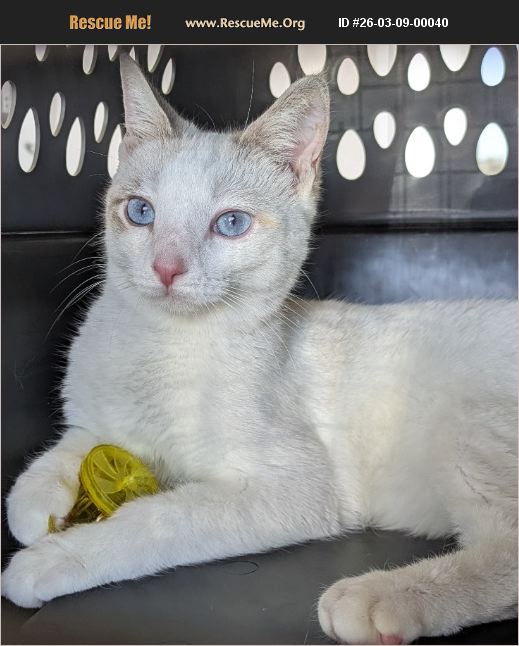 At just 4 months old Pearl was wandering the streets of Phoenix while sick. Until she was saved by a good Samaritan that didn't want to see her suffer. We aren't sure what her life was like before that, but this little girl is incredibly sweet and enjoys meeting new people. Pear is energetic and loves to play with toys. She will play with any toy she finds but especially loves wands. She enjoys watching the birds outside a window. She is your typical Siamese, in that, she is very chatty. When she's ready for a nap, she will curl up beside or on top of you. Pearl's ideal family would have the time to give her lots of attention. She absolutely loves kids and would thrive in a home that had a child to play with. Pearl does fine with other cats, it just takes her a long time to warm up to them. We are unsure how she does with dogs. Pearl is a Siamese mix. She is spayed, microchipped, vaccinated, snap tested, dewormed, and her blood work is normal.