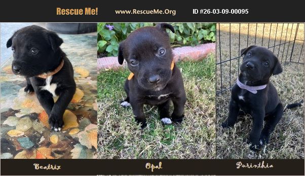 Update: PURINTHIA available ADOPTIONS PENDING for Beatrix & Opal They are 7week old puppies I am fostering these little orphans for PACC. Adoption will be through PACC facilitated through me. They are up to date on vaccinations, will have spay and be available March 20th. A guess at breed is Border Collie. They were 3.5 lbs at 2 weeks, and 7 lbs at 4 weeks, and about 9' tall and 8 lbs at 5 weeks and now 12' tall and 12 lbs at 7 weeks. With paws that are 1.5 inches width and 2' length. If you think you might be able to guestimate adult size. Beatrix started out a little shorter, stockier and fluffier, but she weighs in a full pound less than the others at 11 pounds. She has a good appetite usually eats almost all her 1.25 cup serving 2x per day. She has a white blaze on her chest. She seems the most independent, often off in her own world. She is the most mild mannered and the first to just chill. I think of the 3 a quiet household might suit. Opal was the mid size of the three, but is now the chunky monkey at 12.5 pounds, and she has a voracious appetite she will over eat until she pukes if free fed, so hers must be measured (currently getting 1.25 cups dry twice a day). She has a white comet on her chest (like a dot with a tail). She is the most spunky. Always wants in the excitement. If you want to play hard, she is your gal. I think she might do great with kids. Purinthia originally appeared the tallest (by about 1/2 inch) with the shortest coat that has a small dot in the middle of her chest. She is now 12 lbs eats the most calmly and will leave it when she has had enough, I think she eats about a cup of her 1.25 serving 2x a day. I think she may be half cat (might be my fault for having pur in her name) as she can scale a play yard fence like a pro, hence why down is already in the vocabulary. She wants to be your shadow, follow and sit next to you. I think she would be best for an individual that wants a full time companion. They all love a good game of tug of war. For me, they will sit, get down (off me or fence, etc), stay in their area of the yard, understands no/stop. But when guests around too puppy excited to focus on commands for a bit. Haven't gone poop inside for about 3 weeks and have each only peed inside once or twice on pee pad in last week. But keep in mind, at this age, they aren't expected to have full control. They are all up to date on vaccinations, microchipped and will have spay March 20th. I can provide online adoption links and then she can be picked up directly after her SPAY Friday afternoon from either PACC or me if you are on the East Side of Town. Please text me if you are interested in Purinthia
