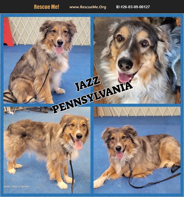 Meet Jazz, a neutered blue merle male that will be three years old on March 26. Jazz weighs in at about 60 pounds. He was well-loved in his home, but through no fault of his own, he is looking for a new one. Jazz is housebroken, crate-trained, microchipped, and up to date on vaccines and preventatives. He's had some training and knows how to heel, sit, down, paw, and stay, but he will need a refresher. He walks well on a leash, rides nicely in the car, and is good for nail trims and grooming. He enjoys toys and loves a good belly rub. Jazz is friendly with all humans and may be able to live with the right canine companion. He currently lives with an older neutered male Aussie as well as a spayed female. He's never lived with cats or young children so won't be placed with them. Older children (12 and up) would be considered. A traditionally fenced yard to keep him safe is preferred, but homes without will be considered on an individual basis. No underground or electric fences. Jazz is very biddable and eager to learn; he would be a great obedience prospect or any other dog sport you asked him to do. He would also be just as happy as a hiking partner, but he does need a job-one that doesn't involve counter surfing, investigating cabinets, or unrolling toilet paper. Those things will require management. Bored Aussies find ways to entertain themselves! Jazz is not in the ARPH program; we are screening homes for the owner. He is located in southeast PA. Jazz's main desire is to please his person. If you think you could be that person and can give him the exercise and attention he needs, please submit an application from our website at www.aussierescue.org