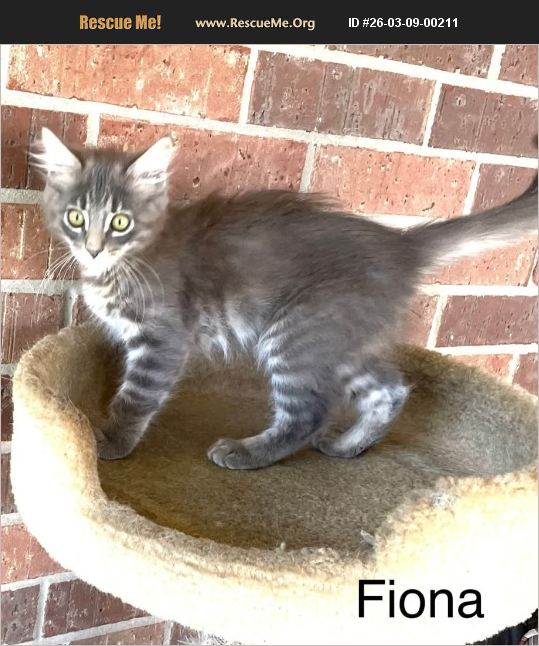 Fiona is an active kitten and she loves playing with a string toy. She is confident, playful, and has no fear. She is also vocal and will tell you when she wants something. In her new home Fiona will do best with a playmate - either another cat or kitten, or maybe even a cat friendly dog.