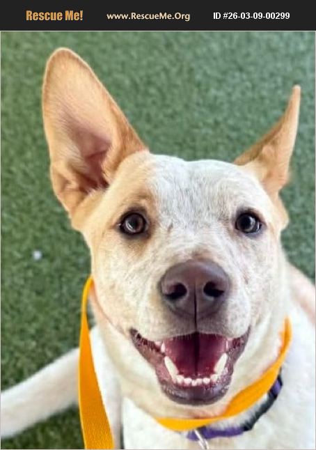 * 10 month old Cattle Dog * spayed * happy, and people friendly * the shelter environment is a little scary for her; she warms up quick though and wants to be friends This girl is such a sweetie, but she is incredibly scared in this environment. She is playful, fun, and energetic. She would do great with an active family and/or someone who is familiar with her breed.