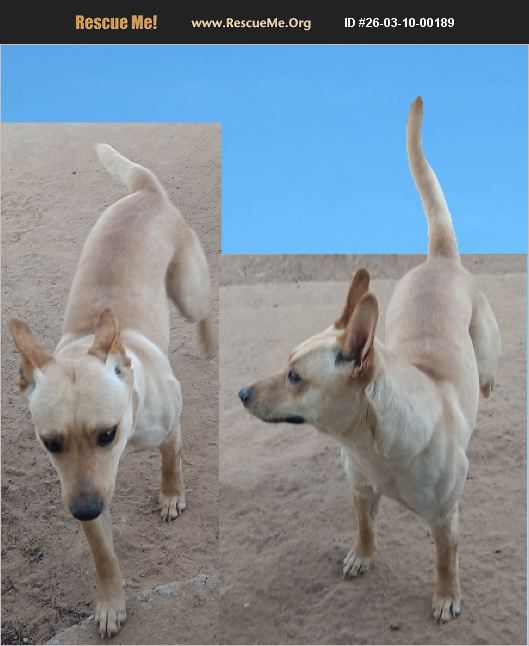 This animal is available to licensed rescue groups only. Please do not enquire unless with a licensed rescue group. 1 year old, approximately, Australian Cattle Dog mix. Goldie is puppy pad trained because she spends most of her time in the house. She does go outside to do her business but because she is not spayed, we don't let her out unless she's supervised. She does not get along with our older spayed females, but she gets along with our two outside working dogs who are neutered males. She is used to being an inside dog. She is not used to human children or human males but she is not aggressive toward people. She did get into trouble chasing horses, which is also why she's kept inside much of the time. We live in a rural community and our neighbors own horses. She needs to be able to go outside and have fun instead of being stuck inside with three old ladies. Goldie is currently eating Rachel Ray's Beef and Rice Dry Dog food, supplemented with a cup or two of whole milk. She also gets Pedigree wet dog food, a can a day with her dry food. And she always has fresh water. If we cannot get Rachel Ray Beef and Rice, we try Pedigree dry high protein dog food which is adequate but only in emergencies. For treats she gets dog biscuits, one or two Walmart Great Value Vanilla Sandwich Cookies, and occasionally a few Cheese Puffs, and she loves plain air-popped popcorn. She's polite and doesn't snatch food. But she does rear up and that is another reason we have to find her a new home. We cannot afford to fall down at our ages. We hate giving her up because she is a pretty dog with a sweet personality when the other dogs aren't around. But she does not like sharing us. She tries to be a lap dog but is content with putting her head on your lap to get some affection. Please consider adopting her soon. Thank you for reading about Goldie.