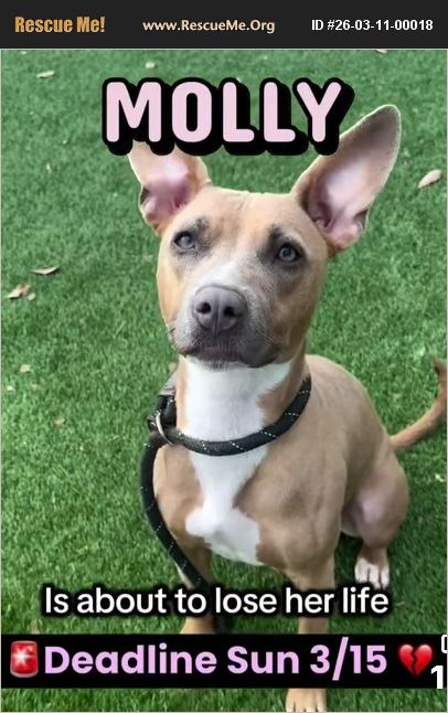 URGENT!!!! This terrified girl will be killed on 3/16!!! She is so scared in the Shelter environment and now they're going to take her life away because of that!! Molly doesn't need a death sentence, she needs a loving home!!! MOLLY, A2254527 - FEMALE, FAWN AND WHITE STAFFORDSHIRE TERRIER. Shelter: NORTH CENTRAL Age: 2 YRS, 1 MO, Weight: 34 LBS. Scheduled Euthanasia Date: 03/16/2026. This animal has been at the shelter since 02/04/2026 and on this list since 03/10/2026. Reason for euthanasia: unmanageable high FAS (fear anxiety stress) in shelter! Last day to take animal: 03/15/26! Scheduled euthanasia date:03/16/26! Molly is available for New Hope, adoption, or foster.