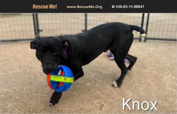 Knox (M) 7 months I love to play with toys and I am very curious about the world! I am looking for a patient family who can teach me, train me, and give me all the love I know I deserve. I promise to thank you every day with tail wags and puppy cuddles!' Dog friendly, cat friendly, need leash manners.