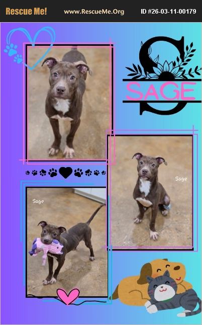 Sage is an almost 8-month-old, spayed female chocolate and white Pit Bull mix weighing about 28 pounds. She came to us as an owner surrender after being found as a stray. The family who found her kept her for about two weeks but ultimately had to surrender her because their current dog did not get along with Sage. During that short time, we were able to learn some helpful things about her. Sage does well in a crate and is mostly potty-trained, giving her a great foundation for her future home. Sage is a smart young dog who already knows several commands including sit, heel, leave it, drop it, focus, off, and wait/stop. She takes correction well and clearly wants to please, which will make continued training very rewarding. During temperament testing, we did notice that Sage will need someone with patience and consistency during playtime. She gets very excited and tends to be mouthy, and when she gets worked up her brain sometimes forgets about manners. She responds well to redirection and correction, but she will need someone committed to helping her learn appropriate play behavior. We suspect that early in her life she may have been played with using hands rather than toys. Even though Sage loves toys, she will often try to play with people's hands and doesn't quite realize that her mouth can hurt. With patience, consistency, and continued redirection to toys, she should continue to improve. Sage walks on a leash but does pull, especially when she spots another dog because she becomes excited. If she goes to a home with another dog, it would be best if that dog is confident and able to correct her overzealous play style and help teach her better dog manners. She has shown no signs of possessiveness or aggression over food or toys, and she has also shown that she does not mind cats, largely ignoring them when they are around. Sage is a very sweet, eager-to-please young dog who truly wants to learn and be part of a family. She simply needs a patient and dedicated owner who will help guide her through her puppy energy and continue teaching her how to play appropriately. With the right home, Sage has the potential to grow into an amazing and loyal companion.
