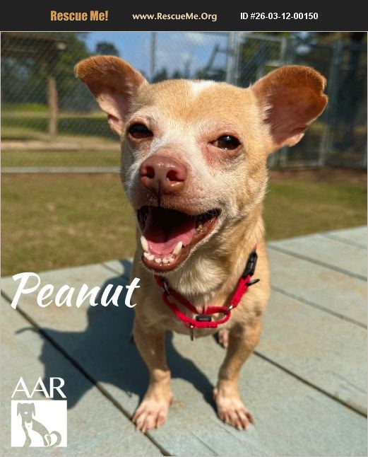 Peanut may be small, but he's got a big personality packed into that little body! This happy little guy enjoys the simple things in life-going for walks, soaking up attention, and being near his favorite people. He's not a full-time lap dog, but he definitely wants to be part of whatever you're doing and will happily trot along by your side like the tiny gentleman he is. Peanut came to AAR after his owner passed away. He spent some time alone before some wonderful rescuers stepped in to make sure he was safe and cared for. Now he's ready for a fresh start and a new family to love. With his cheerful spirit and 'little man' charm, Peanut is sure to bring smiles wherever he goes. All he needs now is a warm home and someone to share his walks and daily adventures with. Est. DOB: 2/1/19 10 lbs. AAR does not transport for adoption.