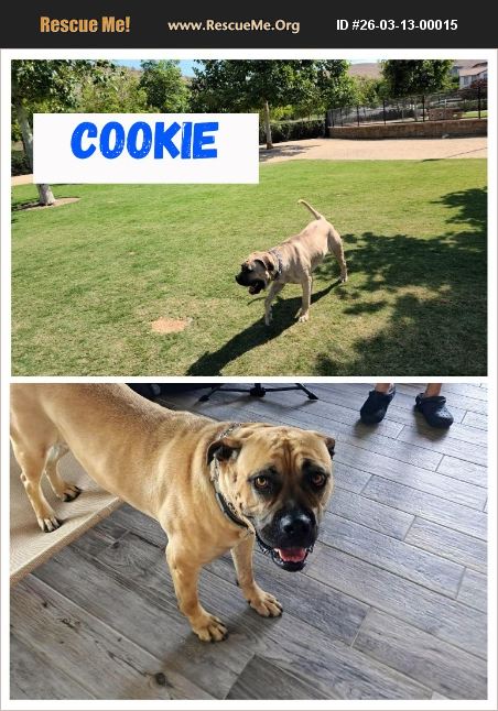 Cookie is an approximately 70 pound female. She potty and crate trained. Adoption process includes application, home check, and adoption fee. PLEASE NOTE: WE DO NOT SHIP DOGS/PUPPIES OUT OF STATE!!! Please allow 24-48 hours for volunteers to reply to any inquiry!