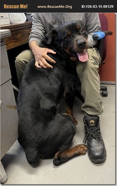 He's a gorgeous purebred Rottie in a kill Shelter! He is just a year old. He's magnificent. He listens very well. He is fine with kids cats and dogs. Ask for his video. He weighs 90 pounds.