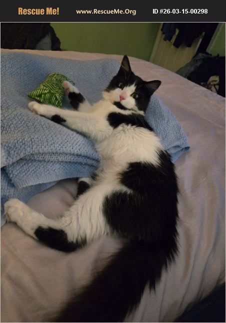 Moe is a very special kind of boy, who needs a special kind of home. He's as sweet and cuddly as can be, but also very high energy. With that high energy comes the need for a home with another very energetic young cat who loves to play hard, rough, and fast. Unfortunately, that turns out to not be our home. Moe absolutely loves to snuggle right up by your face, on your chest, and purrs so loud you're sure he can be heard on the moon. Then, just like that, it's like a switch goes on and he's off and running. Even though he's an indoor only kitty, he has a very strong hunting instinct and will need interactive toys to hunt. Some will come with him, as well as two bowls and some food. The only reason that we are looking to rehome him is because he just plays too rough for our older cat. She is only 4 years old, and playful, but timid, doesn't play rough at all. If you have a rough and tumble kitty who needs a playmate, Moe would be purrfect. Moe is about 6 months old, neutered, vaccinated, dewormed, and tested negative for feline leukemia and FIV. He's a gorgeous tuxedo boy with medium length, silky soft fur, with a tail that will become more poofy as he grows, and the funniest long hair in his ears! He loves everyone, but would be too rough for young children. He would do best in a home with a high energy playmate (a must, no exceptions) and older children. He was in a foster home with large dogs and other cats, and is very food motivated. He's also very, very smart. If interested, please email me for more information. Adoption fee off $100 to help offset all of the vetting done.