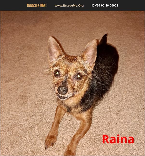 Raina is an 8-year-old Chorkie with a big heart packed into a 10-pound body. This sweet little girl is looking for a loving home where she can spend her golden years being your loyal companion. Personality: Gentle, affectionate, and loves being close to her people Perfect for: A calm home where she can relax, cuddle, and enjoy daily walks may be small, but she has a lot of love to give. She would be a wonderful companion for someone looking for a loyal lap dog and best friend.