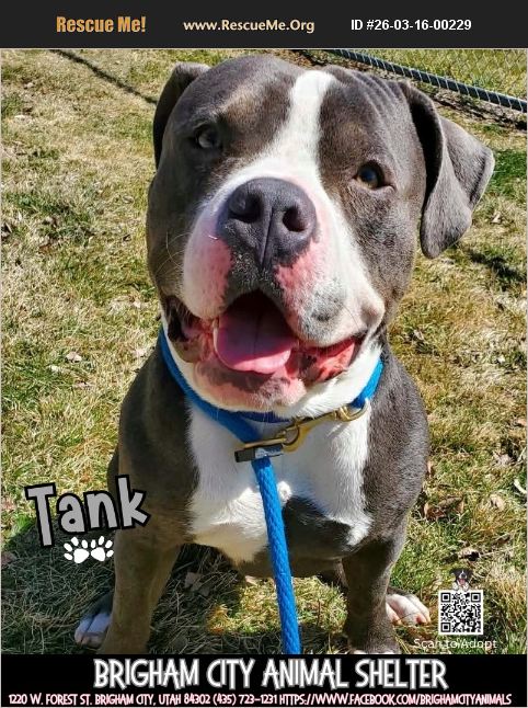 Meet Tank! Hi! I'm Tank, a 9-month-old neutered American Bully with a big personality, a big heart, and a whole lot of puppy energy. I'm still very much a young dog figuring things out, and I'm looking for someone who understands that puppies like me need structure, training, and patience. I'm strong, enthusiastic, and sometimes forget my manners, but I'm also very sweet and eager to interact with people. A little about me: American Bully Neutered male - 9 months old Adoption fee: $40 Needs vaccines Not fully potty trained yet Very strong on the leash and will need work on my manners Lots of energy and personality Because I'm such a strong, energetic young dog, I will do best with an experienced owner who understands powerful breeds and is ready to continue working on training and boundaries. I'm a lot of dog, but with the right guidance I have the potential to become an amazing companion. If you're someone who enjoys training, structure, and helping a young dog grow into his best self, I might be the perfect project for you. Please share Tank to help him find the right home. ***Adoptions are upon approval of an adoption application*** Shelter Hours: Monday - Thursday 12-6 pm Brigham City Animal Shelter 1220 W Forest St, Brigham City, UT 84302 (435) 723-1231 Facebook Page: https://www.facebook.com/brighamcityanimals Online Application: https://forms.gle/RquyC9aWssWYamX46