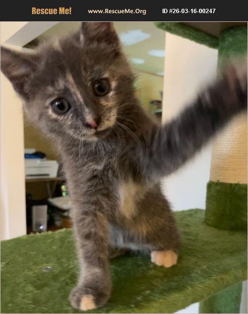 'Though she be little, she is fierce' Ophelia is bold, energetic, and ready for action. This little rascal will launch a sneak attack on your toes and bound away for more mischief with her siblings before you know what happened. She loves a fuzzy blanket to curl up with you for a quick recharge. Ophelia is the second oldest in a litter of 3 that are 8 weeks old as of 3/19, eating solid food and using the litter box with no issues. *Only adopters who agree to spay and vaccinate will be considered.* Her siblings and mom are also listed and available for adoption in combination. Call and leave a voicemail or text if interested.