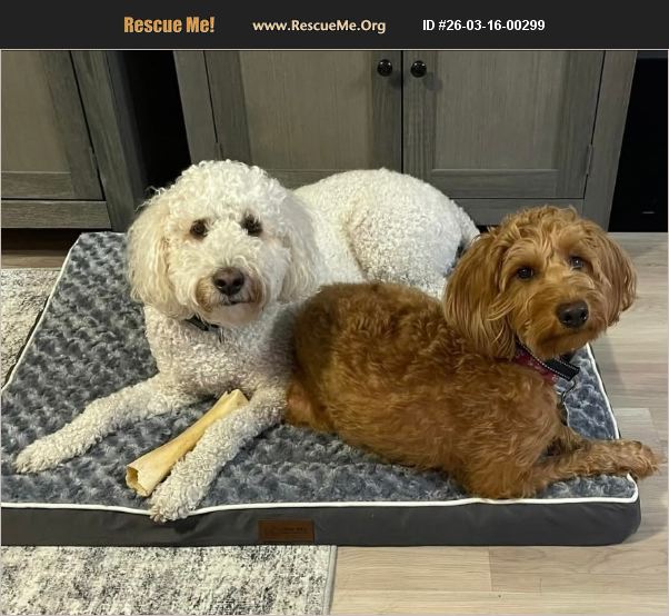 Nova is a golden doodle. She is spayed, house strained, up-to-date on Shots. Heart-worm negative and on preventative. She is a bonded pair with Carlton who is a white golden doodle. They are bonded pair and need to be adopted together.