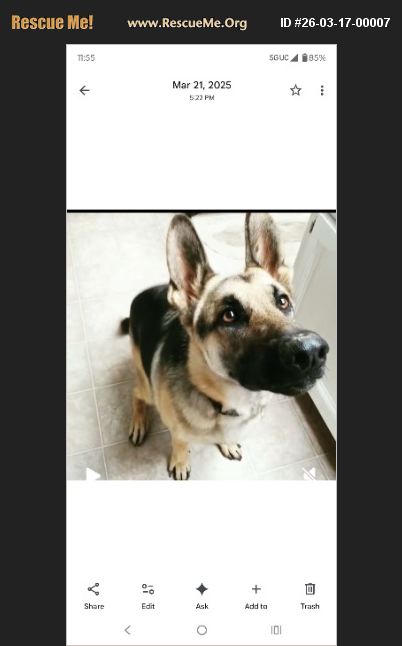 Meet Oso, a handsome and deeply loyal 75-pound German Shepherd turning nine this May. Having served as an emotional support animal, Oso is a true 'velcro dog' who forms an incredibly strong, protective bond with his humans. Despite being an older gentleman, he is very playful and active, so he is looking for a loving family with a yard where he can run around. His natural herding instincts mean he will chase running kids thinking it's a game, so he would thrive best in an adult-only home or one with older, dog-savvy teenagers. One of his most endearing qualities is his gentle nature with other pets; he lives peacefully alongside a Chihuahua, and while he gets along with the family cat, he is actually a little bit afraid of it! We are urgently looking to rehome Oso ASAP because I travel for work and my wife is battling cancer, leaving us unable to give him the active care and attention he needs. If you understand the beautiful loyalty of a Shepherd and can provide a relaxing, safe home with a yard, Oso will be the perfect, devoted companion.