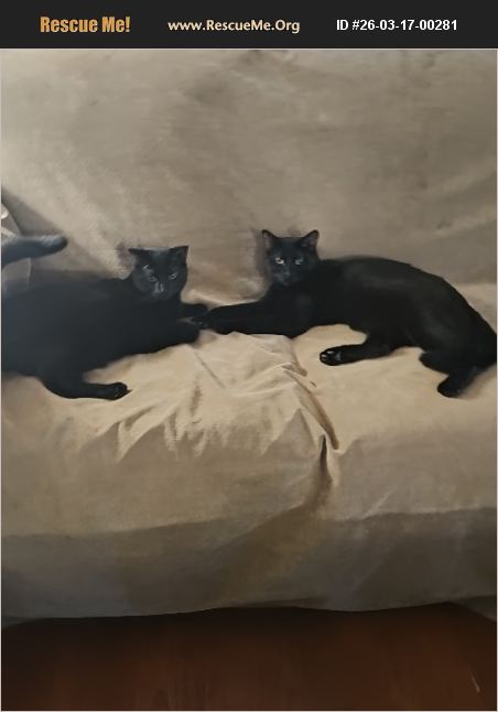 Adopted these two babies last summer. My husband and I have always loved cats and these two stole our hearts the second we saw them. At first, things were great. They're super sweet and loving and made our daughter so happy. However, our two older dogs have grown aggressive to them due to them being very active and wanting to play and rough house. It has resulted in us having to keep the dogs separated from the cats which we cannot do long term. Sadly, we've decided we have no choice but to re-home as soon as possible. Would prefer to keep them together since they're bonded but am willing to separate if no one comes to take both.