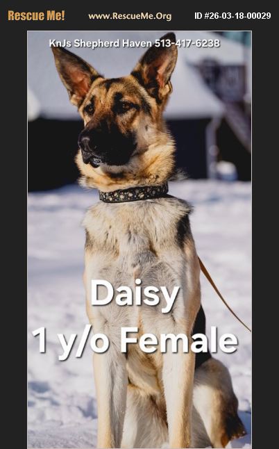 APPLY HERE: TO ADOPT, APPLY HERE: https://docs.google.com/forms/d/e/1FAIpQLSftfJ3aixd0OY8rysxPW0DL1p-swDSrE3k7E8tt_pu7dM2xHQ/viewform?usp=header�%81%A0 CONTACT ME: 513-417-6238 or EMAIL: [email protected] ***Trying to keep this amazing breed OUT of shelters, so please HELP me by SHARING this post and/or sending to anyone that may be interested in adopting. IT TAKES A VILLAGE, AND YOU ARE MINE. Those of you that rescue/adopt these Shepherds in need instead of paying a Breeder, YOU are the REAL TRUE HEROES.***Thank you so much. [I do my best to be as accurate as I possibly can in these profiles. I disclose all that is disclosed to me]. [Case opened on 03/16/26]. URGENT!!! Newtown, Ohio. (willing to drive up to 2 hours). 1 Y/O FEMALE GSD (DOB: 1/13/25). Her name is 'Daisy'. Background: Daisy has been with her current Shepherd parent since she was weaned as a puppy from Puppyland and has been loved and raised in the home. UTD on shots WITH record. Fixed. Good with kids. Good with dogs. Unknown with cats. House trained. Crate trained. Any known medical issues?: None known. Abuse/Neglect/Trauma History?: None reported. ENERGY LEVEL: Medium. PREY DRIVE LEVEL: Medium. Weighs 67 lbs. Currently on Kirkland Signature Puppy food. Good with car rides?: Yes. Socialized with: *people?: Yes. *dogs?: Limited, but has done well. Good with meeting new people? (ALWAYS USE PROPER INTRODUCTION!): Yes. Loves: Walks, fetch, running, playing with kids, car rides, balls, toys of all kinds (especially stuffed animal snakes), cuddling, chewing, chilling on the couch, playing with dogs, sleeping in bed with her person, being near her person, dental chews (she loves hiding them before eating them!). *Intelligent and knows Basic Commands?: This breed is super intelligent. Daisy has had special training with Bulletproof Dog Training. *Good Recall? (ALWAYS RETRAIN BEFORE ALLOWING OFF LEASH): Yes. *Good on a Leash?: Yes. *Lovable?: This breed is super lovable once they claim you as their person/family. *Eager and fast learner?: This breed is super fast learners when they are being committed to and worked with. Bite History?: No. NOTES FROM CURRENT SHEPHERD PARENT: 'Daisy is the SWEETEST dog. She is such a good girl. I have prayed and cried over this decision for a while. It's super hard to see her go.' Re Homing because�'�|: The Current Shepherd Parent's job schedule has changed and no longer able to give Daisy the time and attention she deserves. Because of this, Daisy has started wandering off their unfenced property, which has become a serious safety concern. They love her deeply but know she deserves a home where someone is home more. Daisy will be an amazing companion for the right person. Will thrive best�'�|?: In a loving home where someone is home often, preferably WITH another dog for a playmate, and ideally with a fenced yard so she can safely play and burn energy. Comes with: Collar, leash, crate, bed, and toys. RehomingFee $200. If not on Facebook, please text me for more pics and full Profile. Serious Inquiries, please APPLY HERE: https://docs.google.com/forms/d/e/1FAIpQLSftfJ3aixd0OY8rysxPW0DL1p-swDSrE3k7E8tt_pu7dM2xHQ/viewform?usp=header�%81%A0 Thank you. Would you like to donate to a great cause? Any help is so much APPRECIATED and NEEDED. (We are NOT 501c) Help US to help THEM. Tysm. #ItTakesAVillage LINKS TO DONATE: Amazon WishList: https://www.amazon.com/hz/wishlist/ls/1D1I1QOVAGR4H?ref_=wl_share�%81%A0 Walmart WishList: https://www.walmart.com/lists/shared/WL/6214b31a-4919-4d0a-868e-b75e6bace5e0�%81%A0 Venmo: https://venmo.com/code?user_id=2889571939385344656&created=1767974792�%81%A0 CashApp: https://cash.app/$KnJsShepherdHaven�%81%A0 PayPal: Keren Lainhart [email protected] 513-417-6238 KnJs Shepherd Haven 513-417-6238 [email protected] Text/Call: 513-417-6238. Please JOIN OUR GROUP: Go to the ALBUM 'Current Shepherds Needing Rehomed' and it will show all of the Shepherds that we are trying to find great homes for. Please message me if you are interested in any of them. Thank you https://www.facebook.com/groups/593859788742255/?ref=share�%81%A0