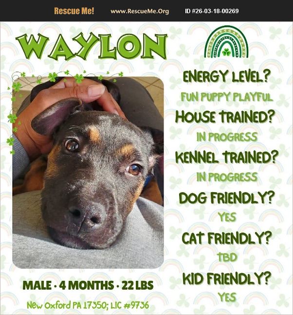 Dog is coming soon. More information and area fostered will be posted once they are available. All dogs are kept up to date on vaccines and preventatives while in foster care. New Oxford PA 17350; LIC #9736�'�� We are PA Caring for K-9's, an all-breed dog rescue that is solely run by volunteers. Most of our dogs are rescued from high kill shelters in the South. If the dog is posted, they are still available! Once arriving, these dogs enter foster homes, as we do not have a shelter. We cannot adopt out dogs to a home with dogs that are not fixed or up to date on shots. If interested in adopting, please submit an application online at www.pack9rescue.org. Our adoption fee for altered dogs is $350 and goes directly to saving the lives of more dogs. Our adoption fee for unaltered puppies will be $400 which includes a refundable $50 deposit upon receipt of spay/neuter certificate. Learn more about adopting from us or volunteering for us at www.pack9rescue.org or check us out on Facebook for more information and a complete list of dogs available for adoption. https://www.facebook.com/PaCaringForK9s/ See upcoming events below where PA Caring for K9's will be with some of our adoptable dogs! Saturday, March 28, 2026 10am-1pm Ciocca Subaru of York (1202 Loucks Rd York, PA) Saturday, April 18, 2026 10am-1pm Ciocca Honda of Harrisburg (8001 Allentown Blvd Harrisburg, PA) Saturday, May 16, 2026 10am-1pm Tractor Supply Co. Harrisburg (7150 Allentown Blvd Harrisburg, PA) Please check our Facebook page closer to each event as we will update daily with dogs who will be attending. All are invited to meet our dogs, but only pre-approved adopters with all household humans and dogs present will be able to adopt at the event. Apply today at https://www.pack9rescue.org/applications/ to become pre-approved.