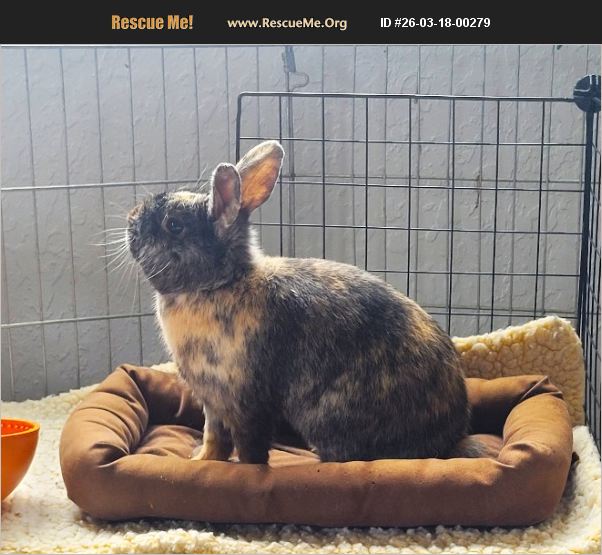 Warning: if you meet this rabbit, he will steal your heart! Kono is a very lovely boy who will make a wonderful addition to his new family. Kono came to us after being abandoned behind a rec centre. Although he was skinny when found, he is very clearly a well socialized rabbit so we know that he was loved at some point. He loves head scratches, cuddling on the couch, racing around the house, and taking snacks from your hand. He sounds like a hummingbird as he does figure eights around his foster mom's legs and hums as he hops along. He loves sage as a treat, and eats his hay well. Although Kono is limited in how many pellets he gets every day (we have to keep his waist line in check) he eats them like he'll never see food again. Therefore, it's important that he goes to a home with someone who can provide appropriate food amounts throughout the day. He will get very fat if he's just given a filled bowl to snack on. Kono lives inside and likes to explore. He has an ex-pen area with lots of steps, boxes, and toys to keep him safe and entertained when he's unsupervised. However, when Kono's foster mom is home, he is allowed to access the home. He doesn't seem interested in chewing base boards or cords (although it's always important to keep cords away from rabbits) and is happiest just running in circles, doing binkies. Although Kono is still working on his litter box training, he is doing well so far. There is a cat in Kono's foster home, and while they are never allowed together unsupervised, he doesn't seem phased by having the cat around. At time, he can be a bit stampy if the cat comes near his enclosure while he's eating, but he's certainly not afraid of the cat. While Kono doesn't live with children, he has been around them and seems comfortable with kids that understand how to handle him correctly and safely. We don't know exactly how old Kono is but our vet estimates that he's about 2-3 years old. He is in good health and his teeth look good. He's obviously got some Harlequin in him based on his size and his markings, he does not seem to be purebred. He weighs about 2kg and is neutered. We have not seem Kono around other rabbits, but he seems content being an 'only child' especially when he has humans that are around to pay lots of attention to him. Kono has just been neutered so will be ready to go to his new home in early April, however, we are accepting adoption applications for him now. If you are interested in learning more about Kono, please visit https://victoriapets.ca/adoption-process/ for information about our adoption process. A link to our adoption application can also be found on that page.