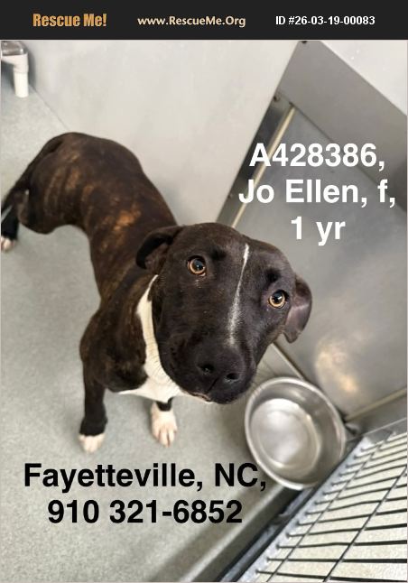This precious 1 year old dog could be euthanized at any minute as she is in an overcrowded shelter in Fayetteville NC. We desperately need to bring her to safety. Jo Ellen is 1 year old, fully vaccinated and will be spayed prior to adoption. If you can open your home and heart, message me on 919 624 0059. Do not delay, she could lose her life at any moment.