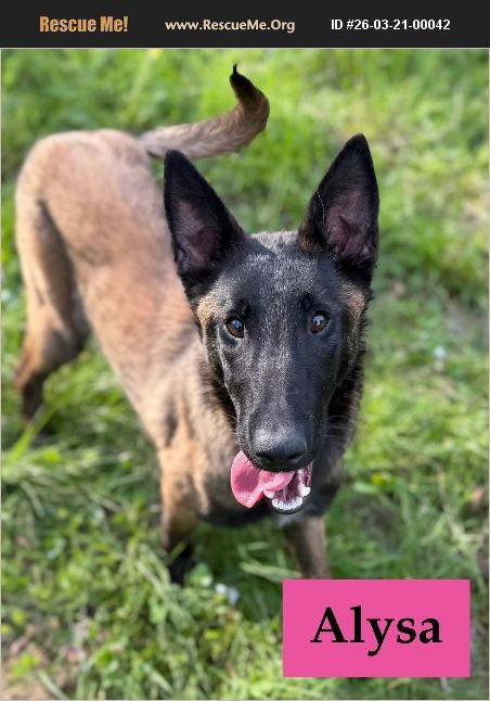 Meet Alysa! Pulled from animal control this girl is sweet as can be. While a young, bouncy pup she has a bit lower drive then your typical Malinois and acts like a golden retriever around people- she does not know a stranger! She even showered the vet staff with kisses and crawled into their laps for cuddles. She is slightly underweight but will not be more then 45 pounds as an adult. She is good but rough with children, great with adults and strangers, good in the car. She will need training to live with a cat as she fixates and definitely wants to chase! She is good with other dogs. Email [email protected] for an application. She is being fostered in the Rome, GA area and transportation is available.