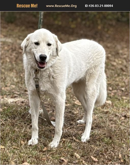 Meet Doug! Doug is a handsome 1-year-old Great Pyrenees/Lab mix with a gentle heart and a sensitive soul. Although his previous home's DNA test labeled him as 100% Great Pyrenees, we know his mother wasn't a Pyr-so he's truly a unique mix! Doug has had obedience training, but he's still quite skittish and needs a patient, calm adopter who can help him continue building confidence. Because of his timid nature, he is not suited for homes with children under 10. He is housebroken. He does well with other dogs and cats and would thrive in a quiet household where he can feel safe and settle in at his own pace. Doug has been neutered, microchipped, vaccinated, dewormed, and heartworm tested negative. His adoption fee is $250. If you have a peaceful home, a gentle approach, and a heart ready to help a shy boy blossom, Doug may be the perfect match for you.